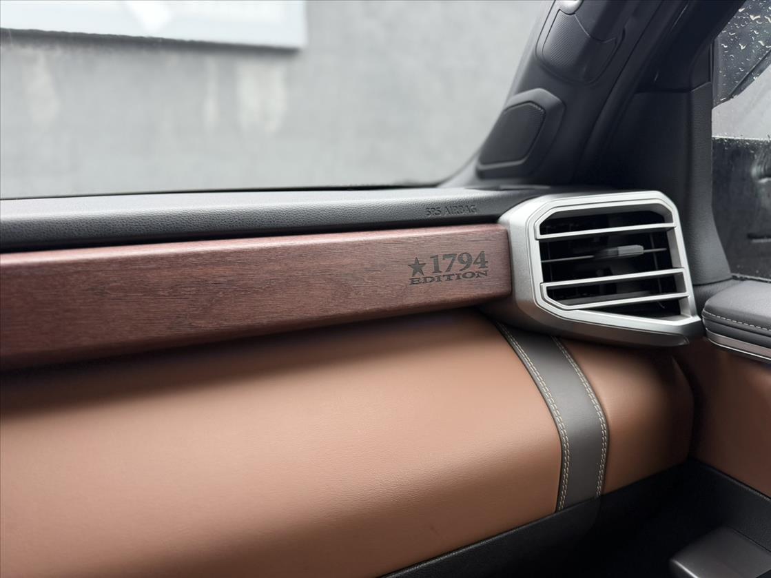 Toyota Tundra 2023 1794 Edition се предлага с два варианта на двигател: 3,5-литров V6 бензинов двигател с двойно турбо или 3,5-литров V6 хибриден двигател с двойно турбо, като и двата осигуряват впечатляваща мощност и въртящ момент.Интериорът се отличава се с ексклузивна кожена тапицерия с детайлни шевове и щамповани елементи в цветове като Saddle Tan или Rich Cream както и 10-посочно електрическо регулиране на предните седалки с 4-посочна лумбална опора, отопляем волан, както и отопляеми и вентилирани предни и задни седалки.Материалите използвани в колата са облицовка от американски орех с лазерно гравиран надпис "1794 EDITION" на инструменталния панел.Моделът включва разширени функции за безопасност като предупреждение за сляпа зона, предотвратяване на напускане на лентата, камера за обратно виждане и адаптивен круиз контрол
