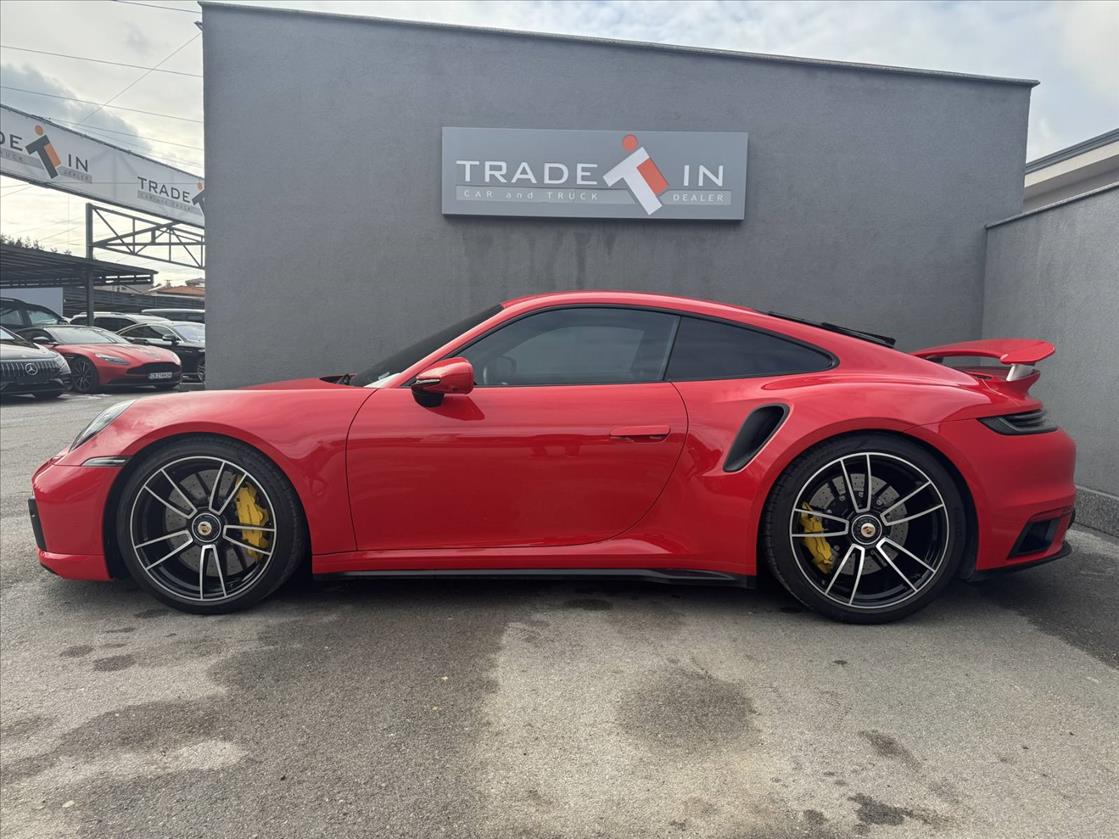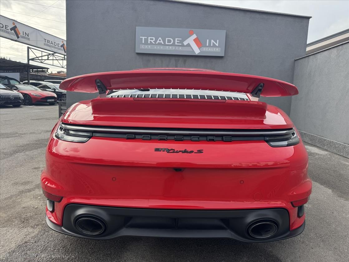 Porsche 911 Turbo S (поколение 992), представен през 2020 г., е един от най-динамичните и технологични спортни автомобили в света, съчетаващ мощността на суперкола с комфорта на ежедневен автомобил.Новият 3,8-литров 6-цилиндров боксеров двигател с два VTG турбокомпресора.Спринтът от 0 до 100 км/ч отнема едва 2,7 секунди. Някои тестове и пакети (като Sport Chrono) дори свалят това време до 2,5-2,6 секунди.Каросерията е значително по-широка – с 45 мм отпред и 20 мм отзад спрямо предходното поколение, което подобрява стабилността.Оборудван е с 10,9-инчов централен сензорен дисплей на системата PCM и два 7-инчови екрана в инструменталния панел.Автомобилът разполага с керамично-композитна спирачна система (PCCB) с 10-бутални апарати отпред за максимално спирачно усилие.