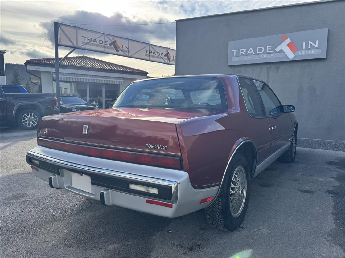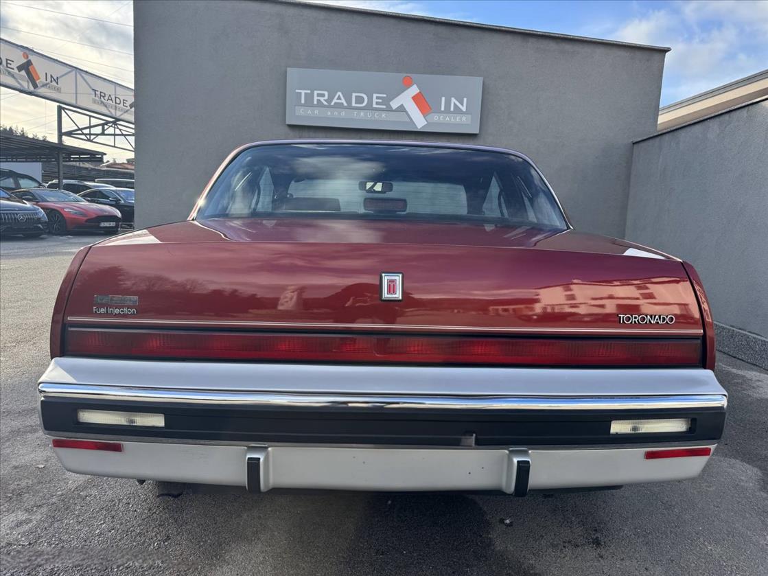Oldsmobile Toronado от 1987 г. принадлежи към четвъртото поколение на модела (1986–1992), което бележи радикална промяна към по-компактни размери и съвременни технологии.Единственият наличен вариант е 3.8-литров V6 (Buick), генериращ 150 к.с. За разлика от предишните поколения, V8 двигателите вече не се предлагат.4-степенна автоматична скоростна кутия с предно предаване.Купе с две врати, отличаващо се със скрити фарове ("flip covers") и почти вертикално задно стъкло за повече пространство в купето.Опционален напълно цифров инструментален панел с информация за разхода на гориво и пробега.Стандартно оборудване включва круиз контрол, регулируем волан и 6-посочна електрическа седалка за водача.