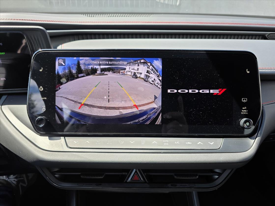 Daytona EV успешно пренася класическият Challenger в бъдещето с модерни технологии - 12'3 тъчскрийн дисплей Uconnect 5 и 10.25'' цифров панел за шофьора. Това не е компактно купе, но е изключително лесно за маневриране с 360 градусова камера.